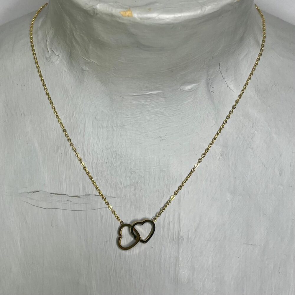Waterproof Stainless Steel Gold Double Open Heart Necklace..